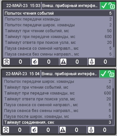 После неоднократных изменений таймаутов, неисправность "Потерян прибор->Восстановлен прибор" исчезла. Необходимо было установить следующие значений таймаутов: